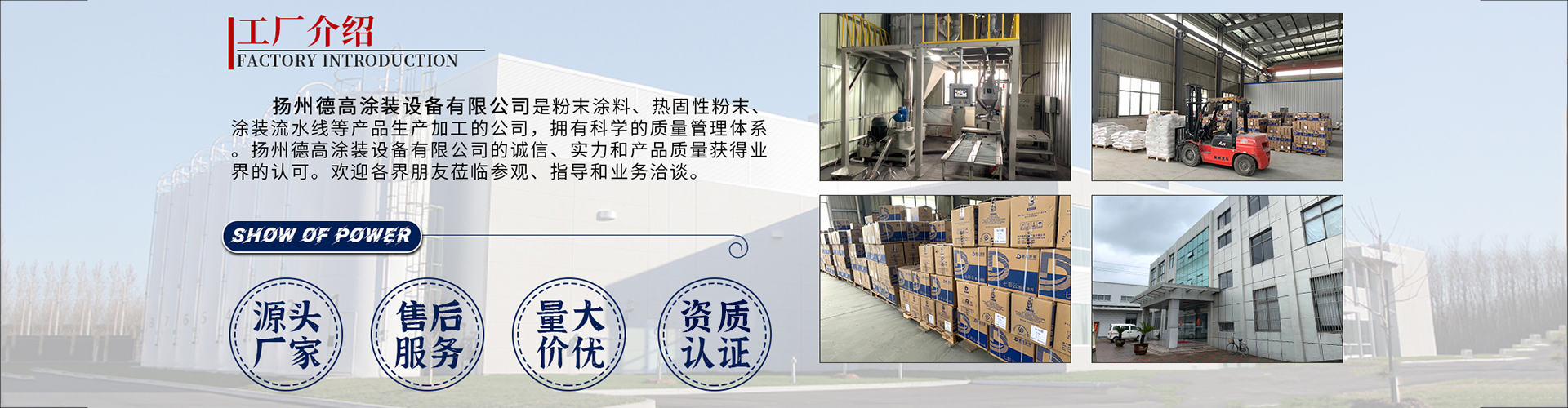 揚州吉蕾塗裝設備有限公司,始建于2013年(nián),位于揚州市江都(dōu)區小紀鎮工(gōng)業園區。它是粉末塗料、熱(rè)固性粉末、塗裝流水線等産品專業生(shēng)産加工(gōng)的公司,擁有完整、科(kē)學的質量管理(lǐ)體(tǐ)系。多年(nián)來(lái),企業通過研發,創新,爲塗裝行業做出優異的産品與服務,誠信、實力和産品質量獲得(de)業界的認可(kě)。粉末塗料是一種新型的不含溶劑100%固體(tǐ)粉末狀塗料。具有無溶劑、無污染、可(kě)回收、環保、節省能源和資源、減輕勞動強度和塗膜機(jī)械強度高等特點。粉末塗料是與一般塗料完全不同的形态,它是以微細粉末的狀态存在的。由于不使用溶劑,所以稱爲粉末塗料。